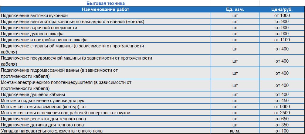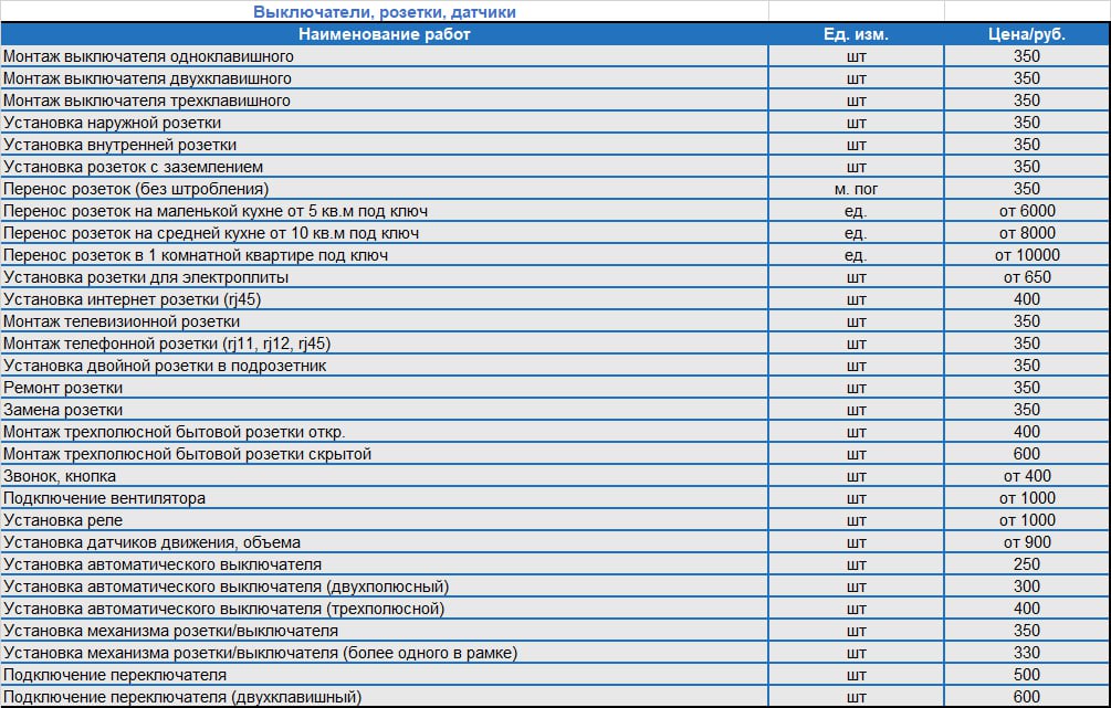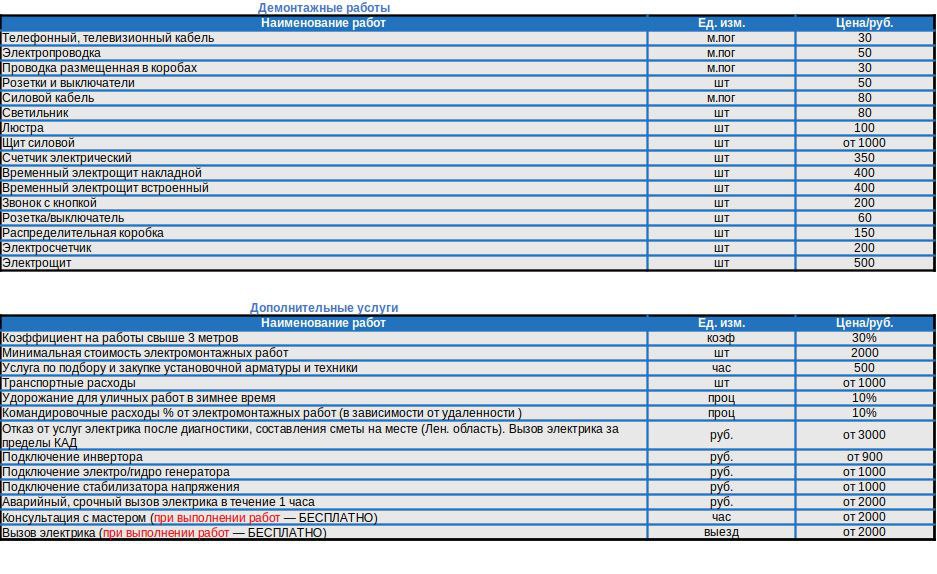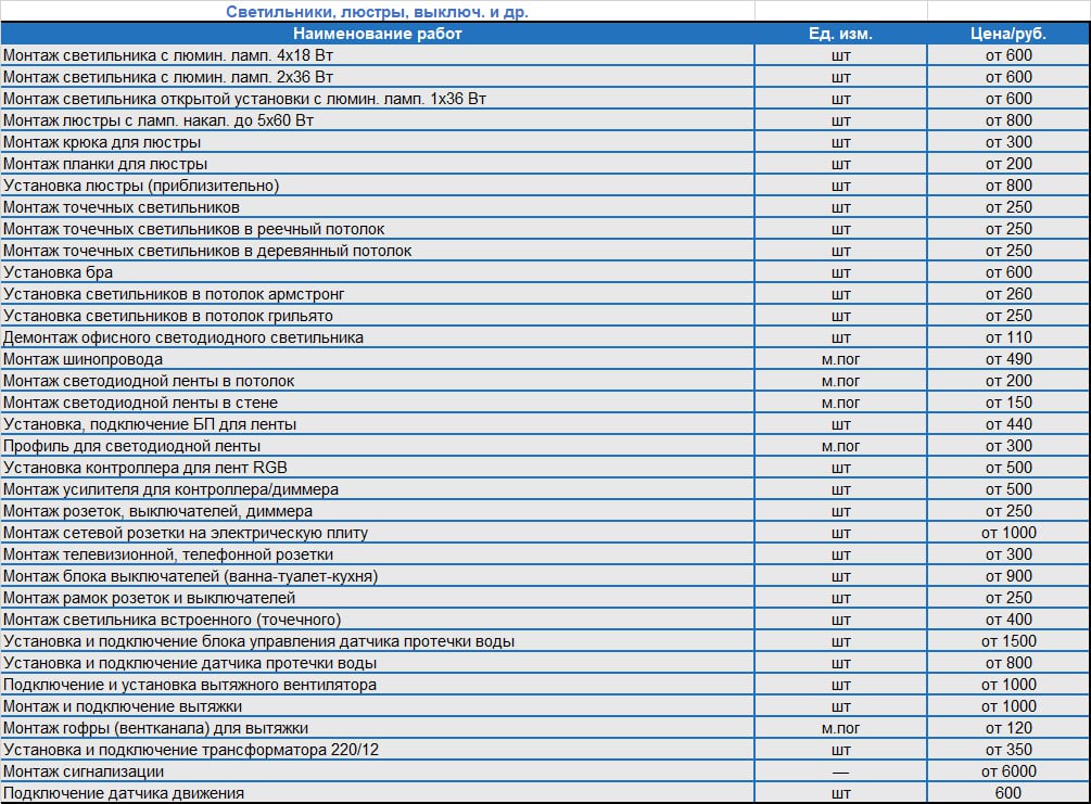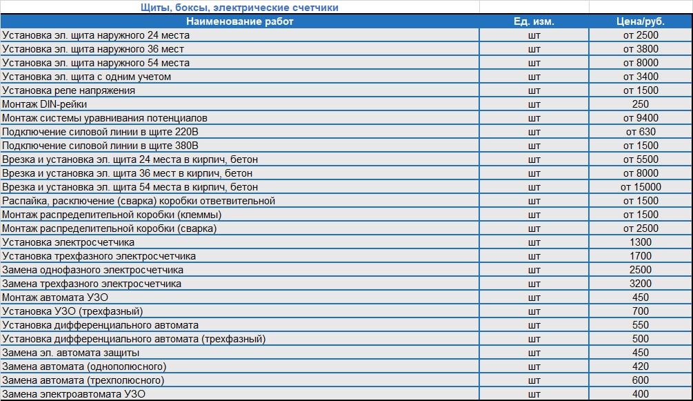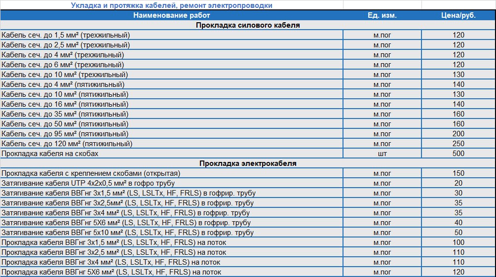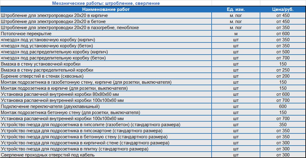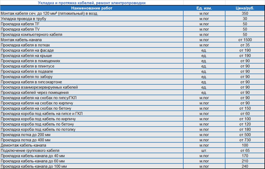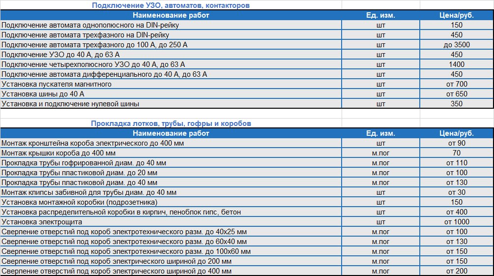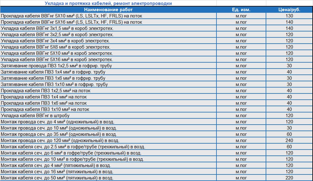 Прайс-лист на монтаж электропроводки